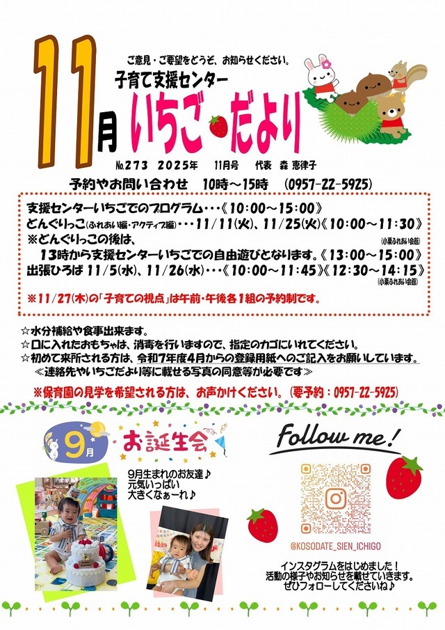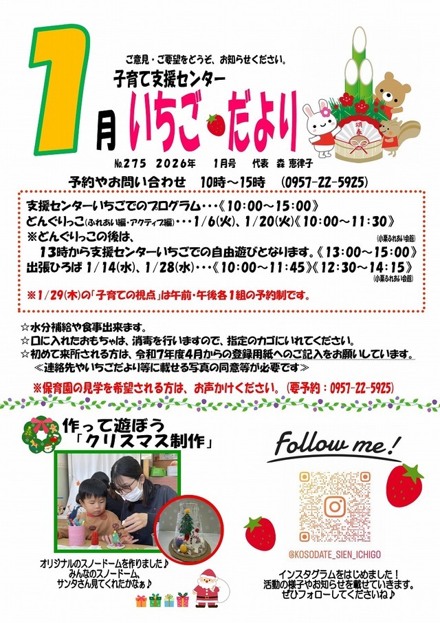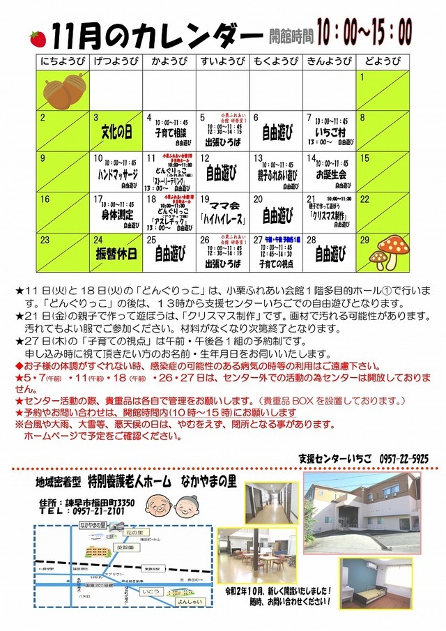 親子ふれあい遊びと、子育ての視点、夏祭り、ワンフェス、クリスマス会、お別れ会は予約制です。 - AM