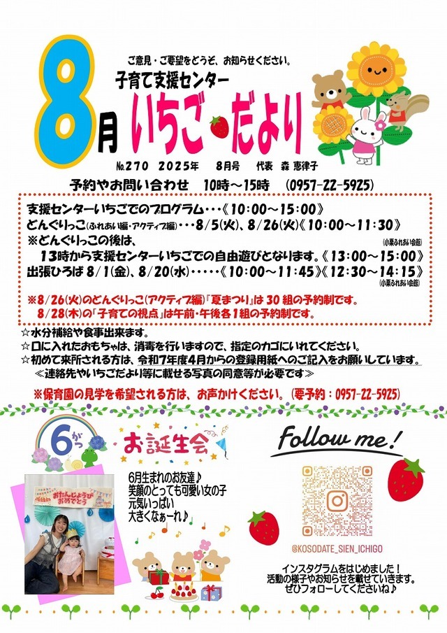 親子ふれあい遊びと、子育ての視点、夏祭り、ワンフェス、クリスマス会、お別れ会は予約制です。 - AM