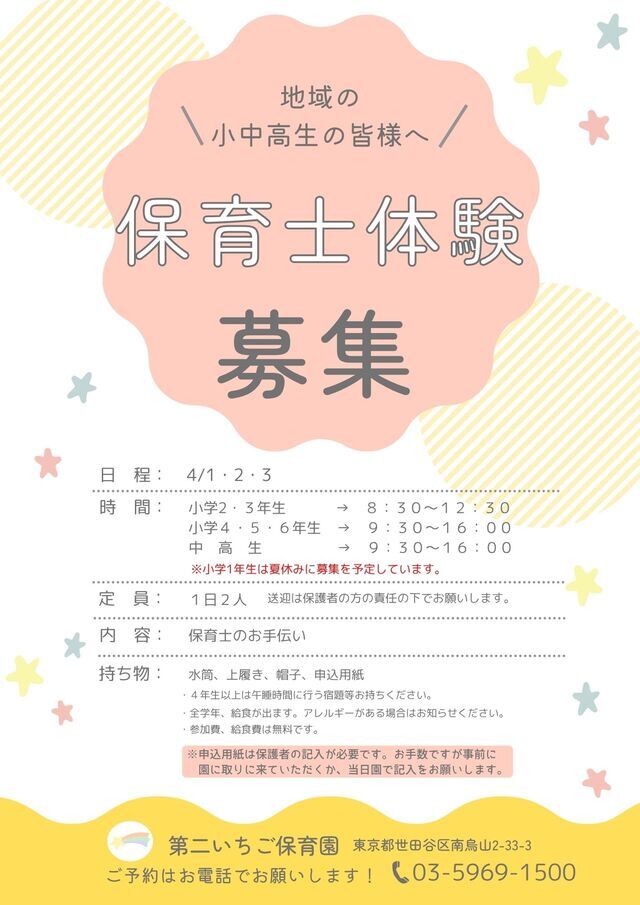 | 入園対象児 | 生後57日~小学校就学前まで |